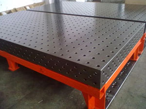 4、 重复性:三维柔性组合焊接工作台的台面有铸铁/钢结构件/精密加工件 /模块化组件组合而成,其性能非常稳定,如使用不当造成部件损坏时,也不用报废整张台,只要非常少的成本_可以更换单个部件。焊接平台经过特殊加工处理, 在焊接过程中,仅需低廉的防飞溅液即可免除工作台表面的焊接飞溅。
